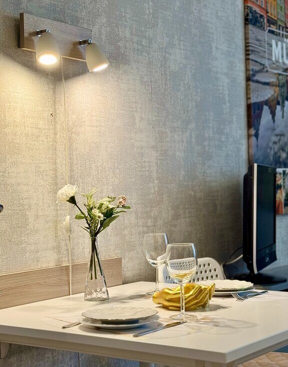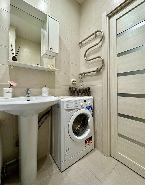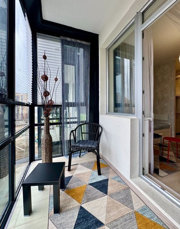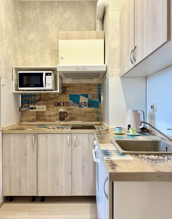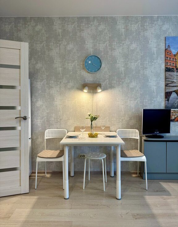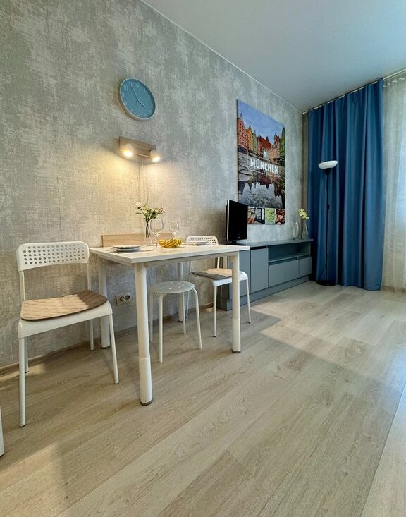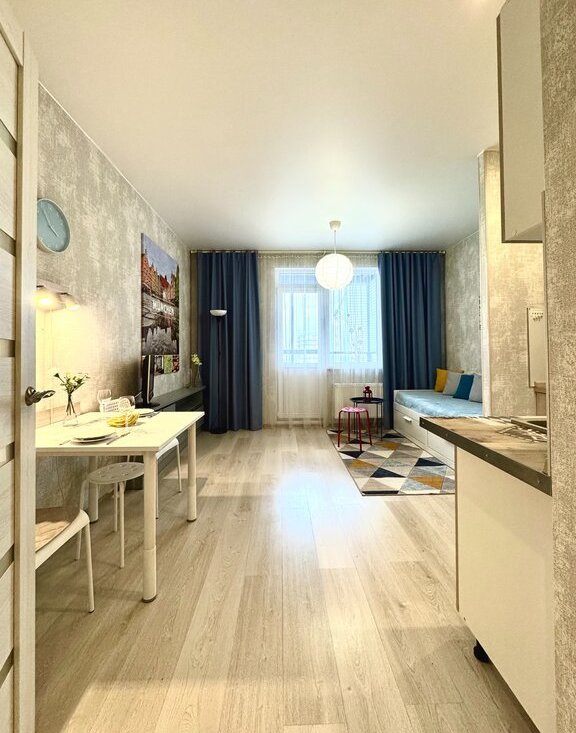 В квартире выполнен ремонт с применением качественных отделочных материалов, тщательно подобрана мебель как в комнате, так и на кухне. Организовано зонирование пространства для комфортного проживания. Вся необходимая техника в наличии: холодильник, телевизор, стиральная машина, духовой шкаф, микроволновая печь. Планировка студии продумана до мелочей, есть совмещенный санузел с ванной и лоджия для дополнительного пространства с зоной для релакса.
