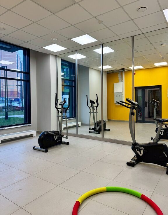 Дом оборудован подземной парковкой, поэтому можно не беспокоиться о месте для автомобиля. Для удобства жителей установлены пассажирский и грузовой лифты. В доме имеется интернет, поэтому связь всегда под рукой. А также фитнес комната на первом этаже.