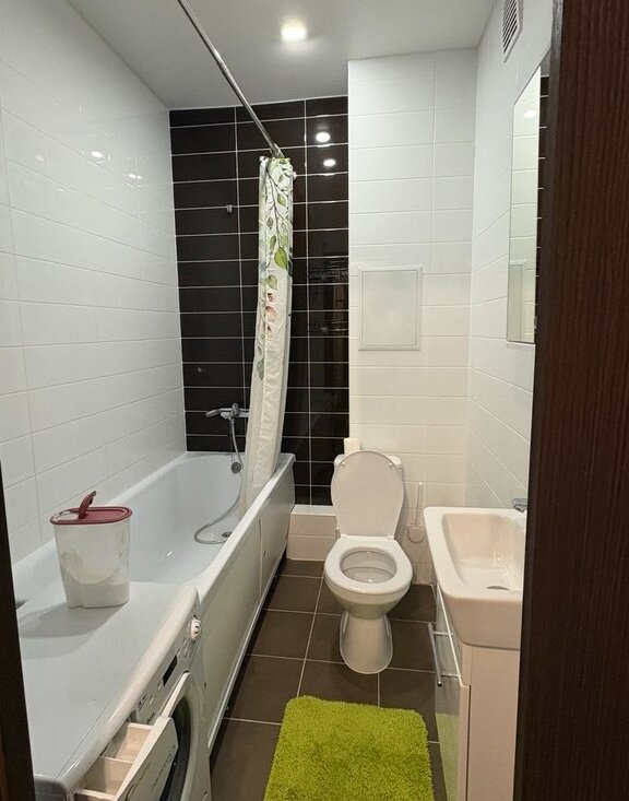 Квартира в отличном состоянии, чистая и аккуратная, укомплектована всей необходимой мебелью и бытовой техникой. В качестве спального места используется удобный раскладывающийся диван. В санузле установлена ванна. Имеется застеклённая лоджия. Приятный вид из окон.