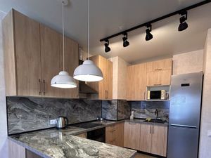 Квартира сдается впервые, вся мебель и техника новая. Сделан современный дизайнерский ремонт. В квартире есть вся необходимая для комфортного проживания техника и даже больше: микроволновая печь, холодильник, стиральная машина, робот пылесос, индукционная варочная панель.