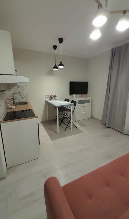 Район с развитой инфраструктурой: магазины, аптеки, кафе - все в шаговой доступности. До метро всего 15-20 минут пешком. Отличный вариант для одного или пары.