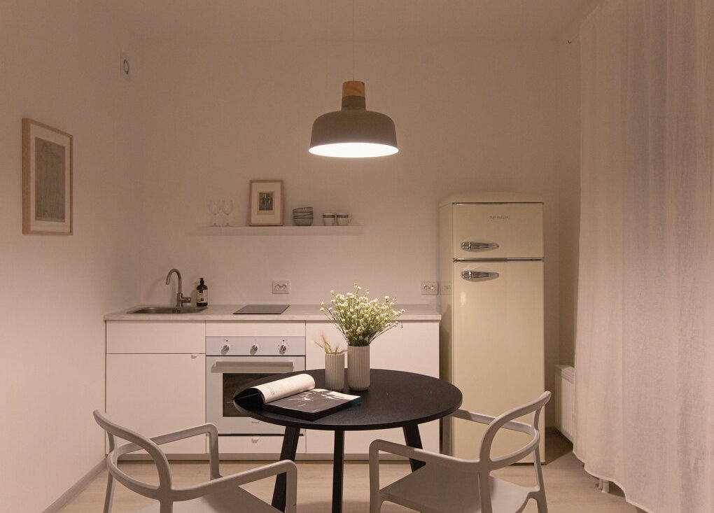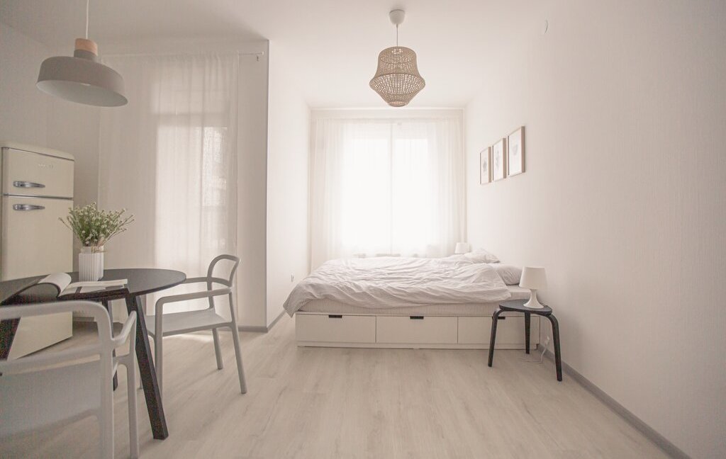 Всё уже есть для комфортной жизни: необходимая мебель, кухня с техникой (плита, духовка, холодильник,микроволновая печь), стиральная машина, удобная обеденная зона и спальное место. Ничего докупать не нужно — можно сразу заехать для проживания или начать сдавать.
