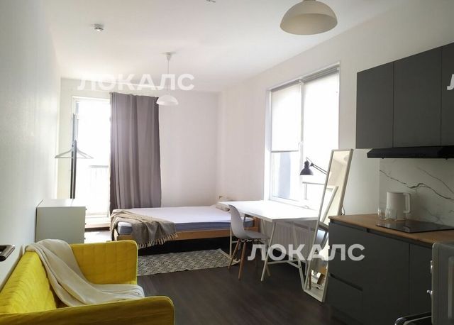 Общая площадь квартиры составляет 28 квадратных метров. Планировка выполнена в формате студии с двумя окнами. Для комфорта жильцов предусмотрена бытовая техника: холодильник, стиральная машина, микроволновая печь и индукционная плита. Также имеется лоджия, что расширяет жилое пространство.