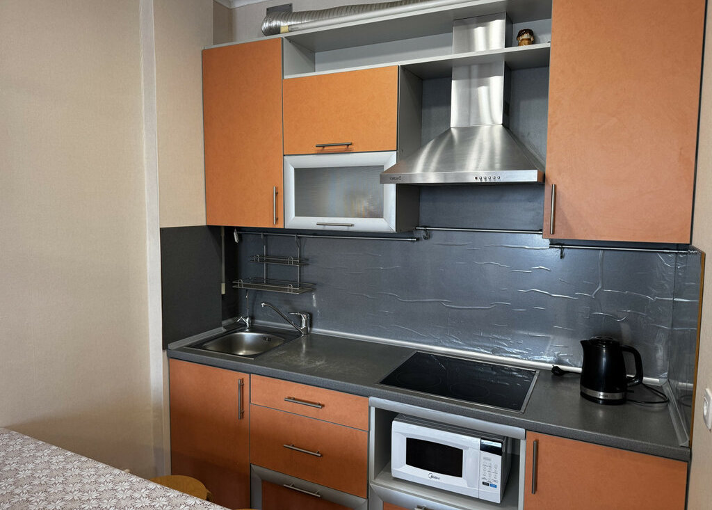 Оснащение квартиры: телевизор, электрочайник, электроплита, микроволновая печь, стиральная машина, холодильник.