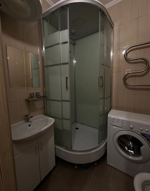 Квартира светлая, чистая, с хорошей планировкой. Всё необходимое для комфортного проживания есть (диван-кровать, кресло-кровать, 2 шкафа, компьютерный стол, стойка под телевизор с маленькими шкафчиками, телевизор, большой обеденный стол, холодильник, плита, микроволновая печь). В совмещенном санузле душевая кабина, стиральная машина, водонагреватель.