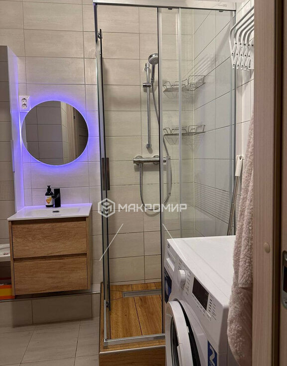 В комнате установлен телевизор с функцией смарт-ТВ, раскладной диван с матрацем, большой шкаф. Уютная ванная комната с душем.
