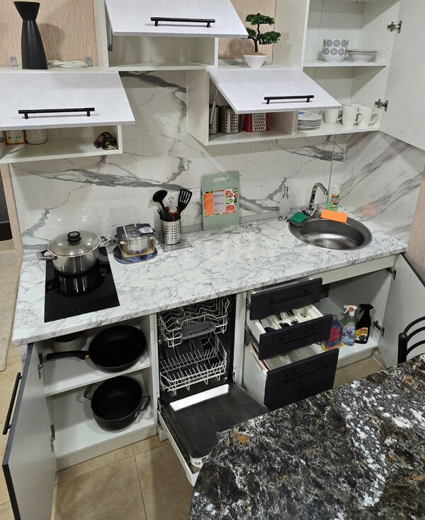+ кухонная утварь: посуда, сковороды, кастрюли и пр.