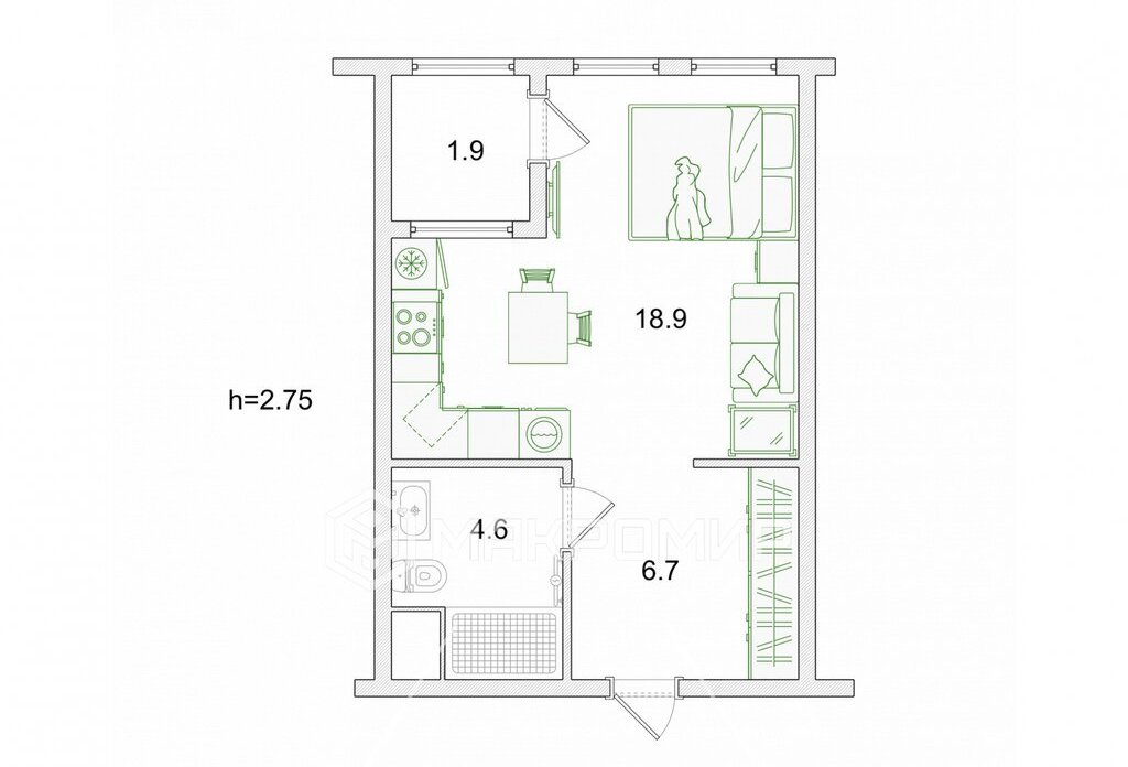 Квартира-студия: Санкт-Петербург, улица Челюскина, 2 (30 м²)