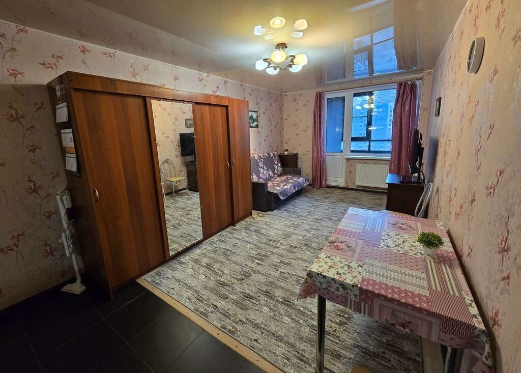 Студия просторная , площадь указана без лоджии. В хорошем состоянии и чистая.