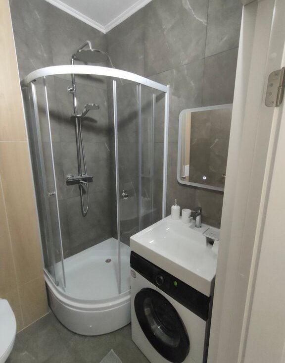 Квартира оборудована современной техникой и мебелью: холодильник, стиральная машина, телевизор Smart TV, духовой шкаф, микроволновка, утюг, пылесос, раскладной диван с ящиками для хранения, встроенный шкаф. В совмещенном санузле установлена душевая кабина, теплый пол. В лоджии установлены рулонные шторы.