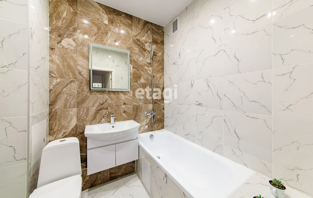 Совмещенный санузел с ванной и стиральной машиной.