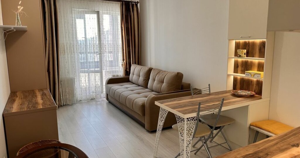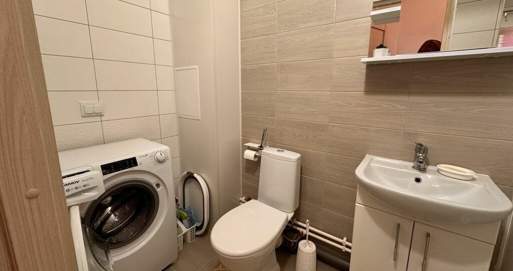 Квартира с евроремонтом и полностью меблирована. В комнате и на кухне есть вся необходимая мебель, поэтому можно сразу заезжать и жить. В квартире установлена стиральная машина и холодильник, поэтому можно не беспокоиться о бытовых мелочах. Санузел совмещенный, оборудован душевой кабиной.