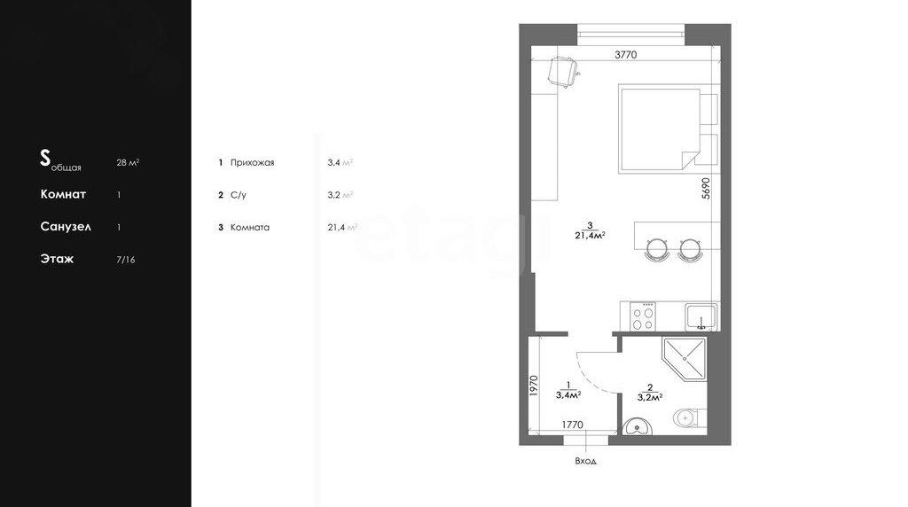 Продуманная планировка с кухней, зоной отдыха и совмещенной ванной комнатой.Квартира оборудована всей необходимой мебелью и техникой.