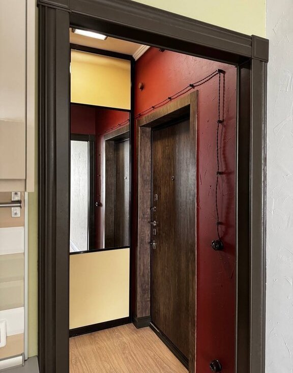 - шкаф-купе в коридоре с большими зеркалами. В шкафу перегородка - правая половина для верхней одежды, левая для остального, плюс антресоли, выдвижные ящики и ниши для обуви.