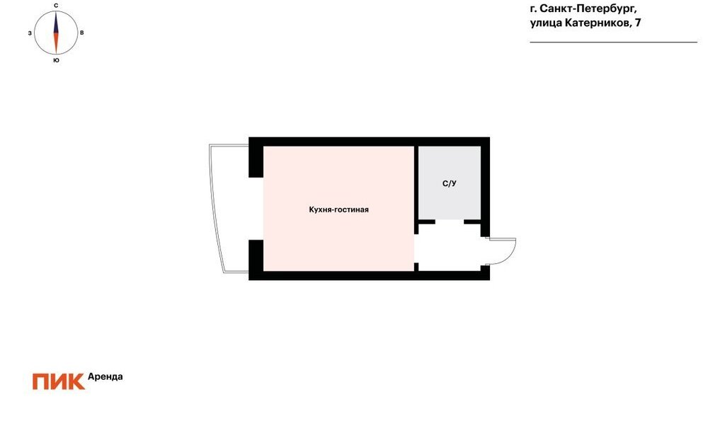 Квартира-студия: Санкт-Петербург, улица Катерников, 7 (26.2 м²)