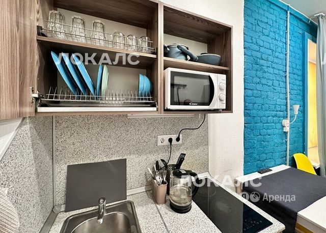 Сдаётся студия площадью 20 кв.м. с дизайнерским ремонтом на 2 этаже в 7-этажном доме на срок от 11 месяцев. Из техники есть: