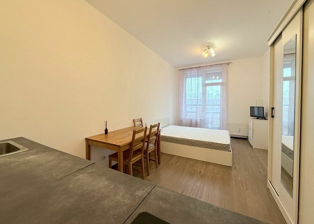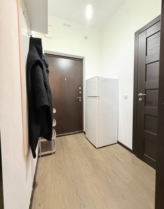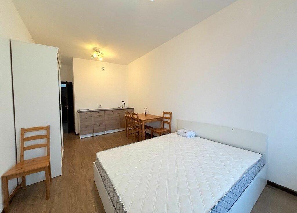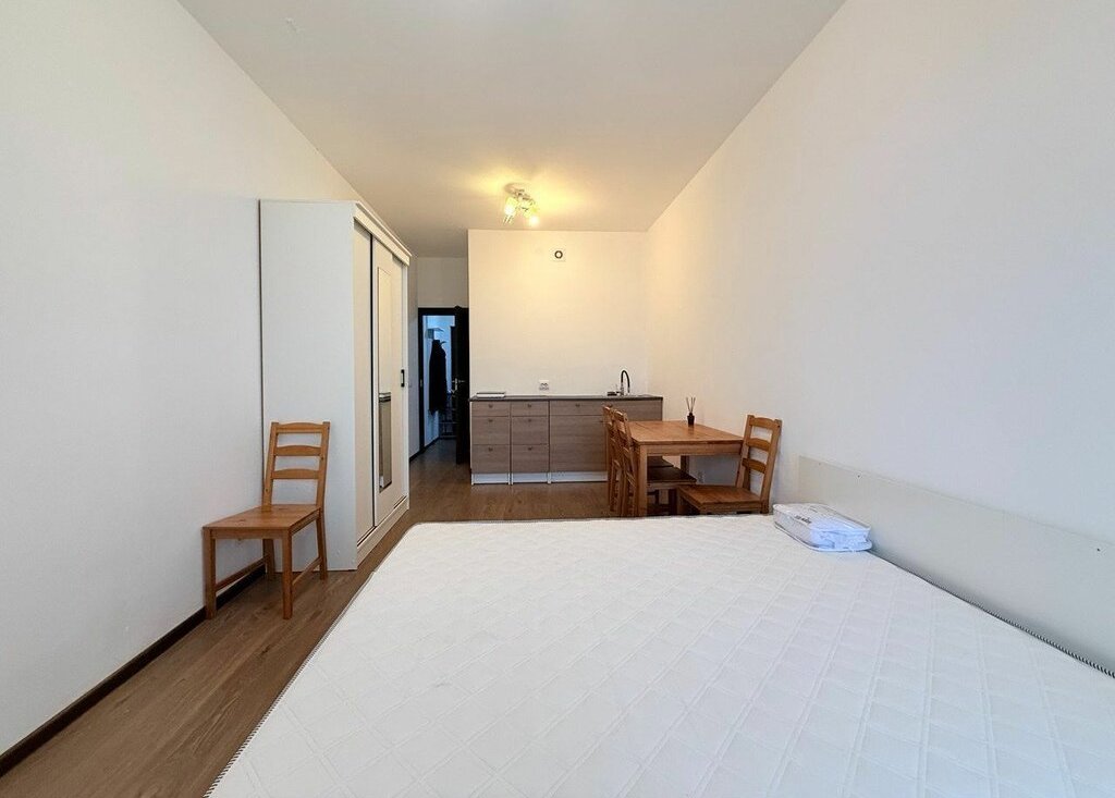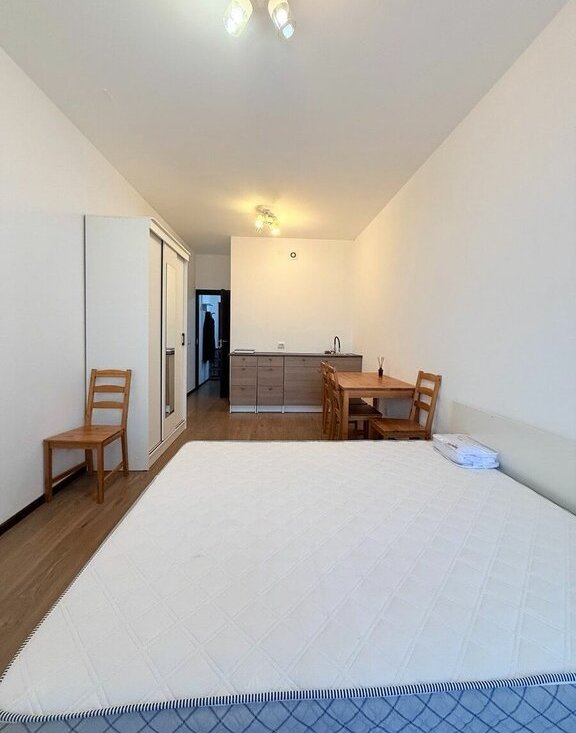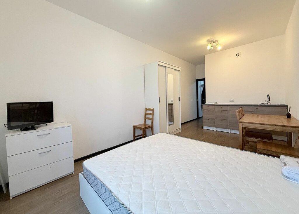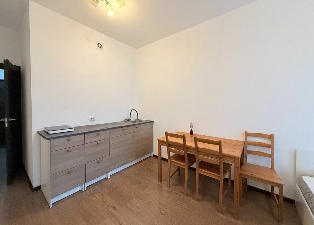 + Хорошая для студии планировка: просторная зона кухни и комнаты, достаточно большой с/узел, есть отдельная ниша под стиральную машину.