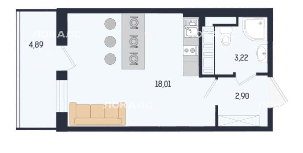 - большая лоджия 5 кв.м. (её площадь не включена в общую площадь студии);