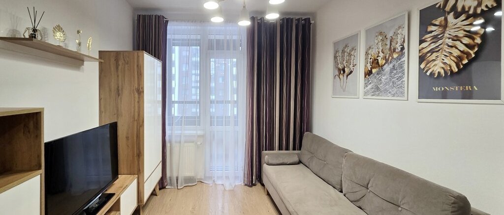 Квартира с современной планировкой: комната-кухня 17.8 м2 с выходом на застекленную лоджию 4.4 м2, прихожая 2.9 м2, совмещенный с/у 4.3 м2. Окна выходят на улицу, на юг. Евроремонт 2023 года!!! На стенах обои под покраску. Крашеные потолки. На полу – ламинат. В с/у на стенах и полу - плитка. Счетчики учета воды, эл/эн и отопления.