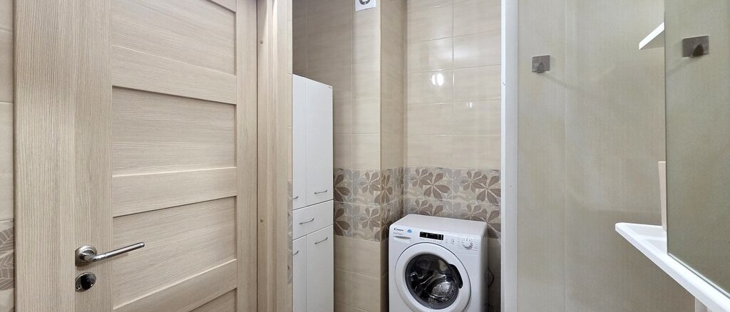 - в с/у - шкафчик с зеркалом, стиральная машина, шкаф.