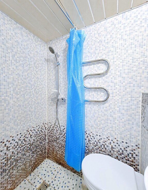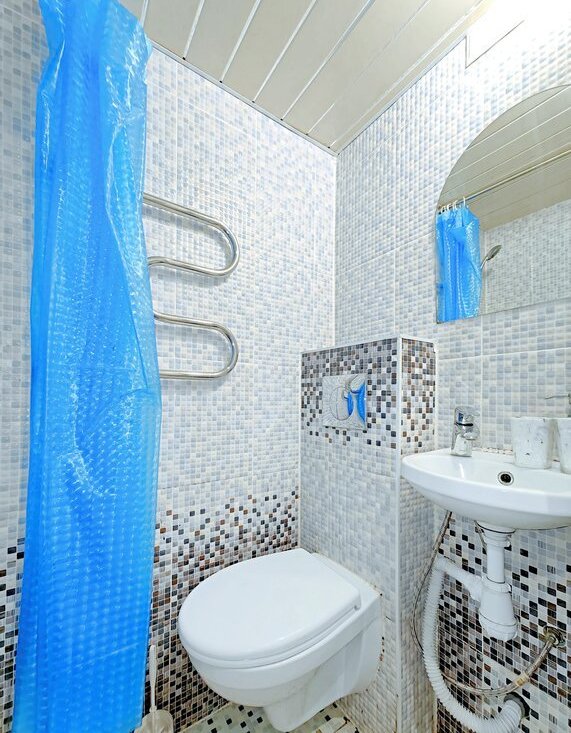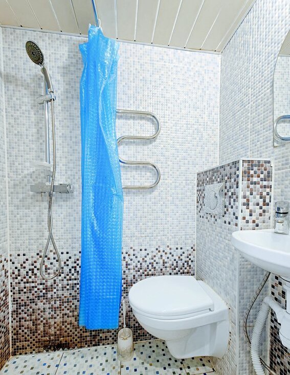 -Санузел с душевой кабиной и туалетом.
