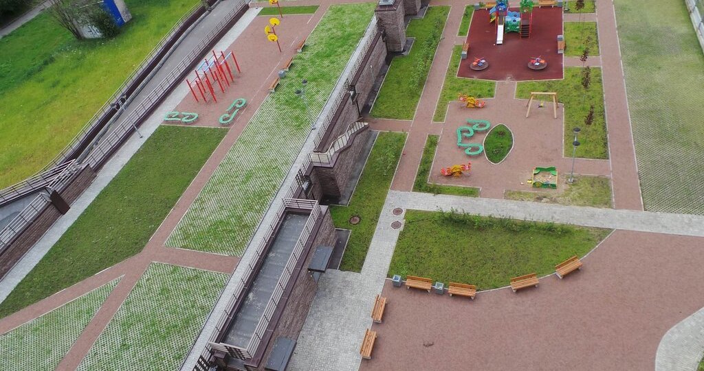 Выход из парадной через калитку - прямо в парк.