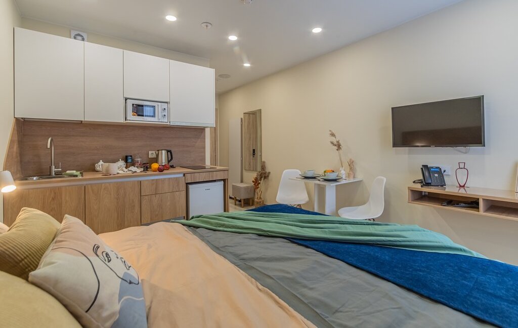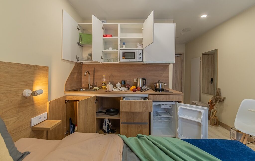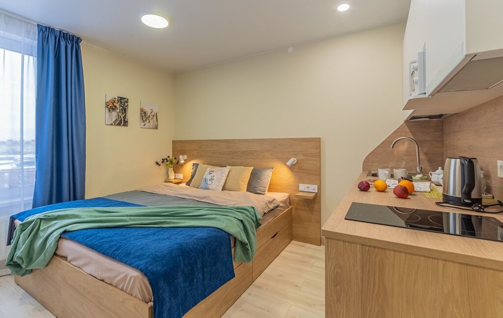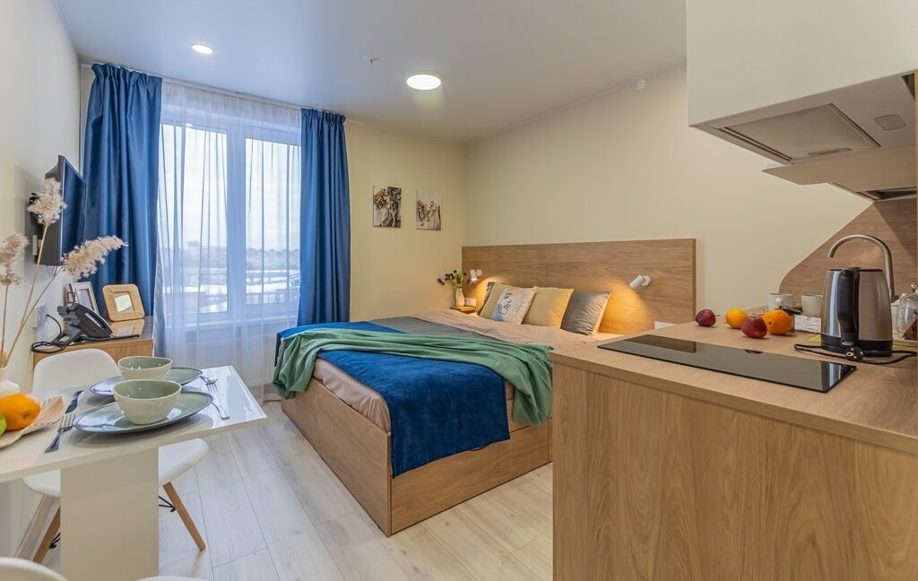 💜Стильные апартаменты 25 квадратов со спальней совмещенной с кухонной и обеденной зоной в скандинавском стиле