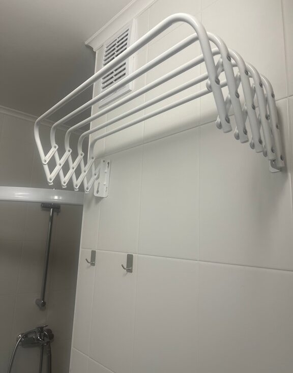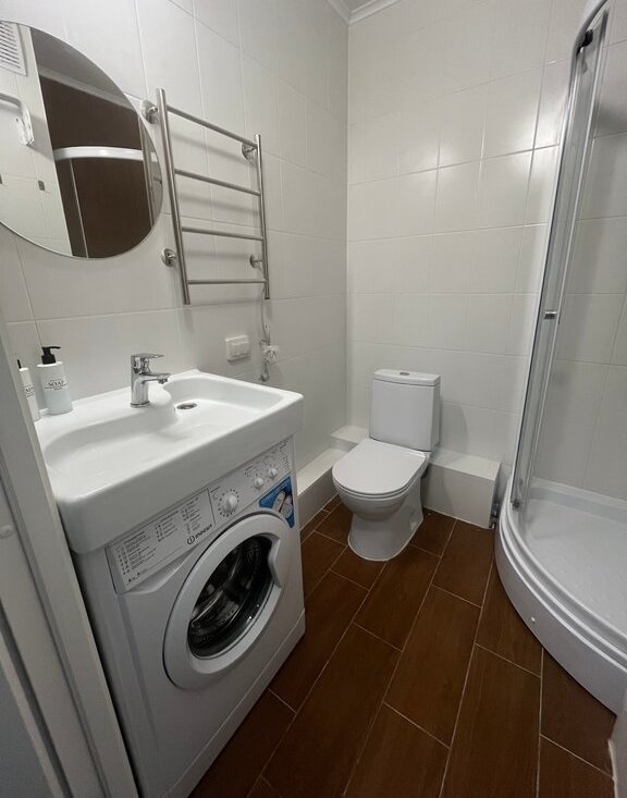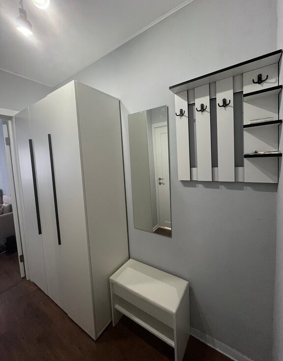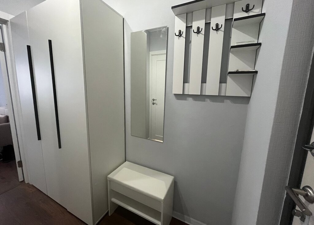 В санузле стиральная машина и сушилка. В коридоре большой, вместительный шкаф и вешалка для одежды.