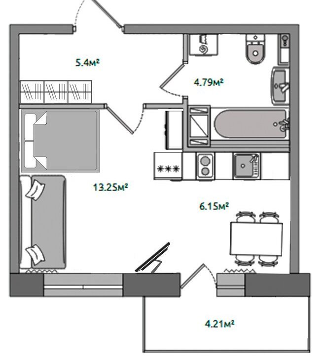 Квартира квадратная, с двумя окнами, имеется просторная застеклённая лоджия.