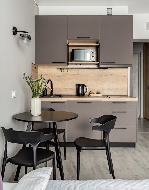 🔸полноценной кухней, оборудованной всей необходимой техникой, микроволновую печь, всю необходимую посуду для приготовления любимых блюд и сервировки, посудомоечной машиной;