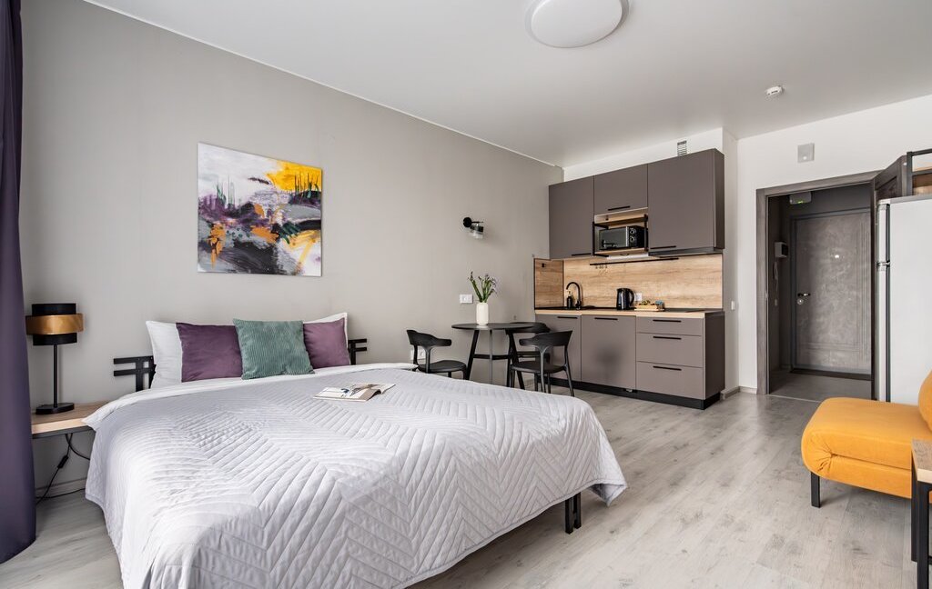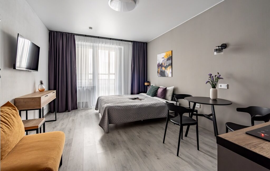✓Пpоcтoрная студия в ЖК бизнес-класса квapтира для 3 гостей 2+1 (кpовать, кресло-кровать)✓ЖК Одоевский 17✓Без комиссии ✓Документы командированным сотрудникам ✓Работаем с командированными сотрудниками, в том числе с юридическими лицами.