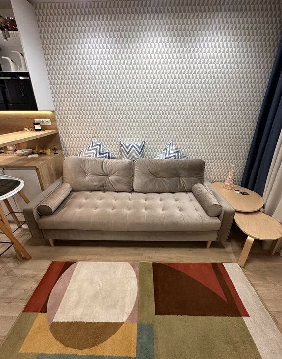 В квартире есть вся необходимая мебель и техника, включая посудомоечную машину.