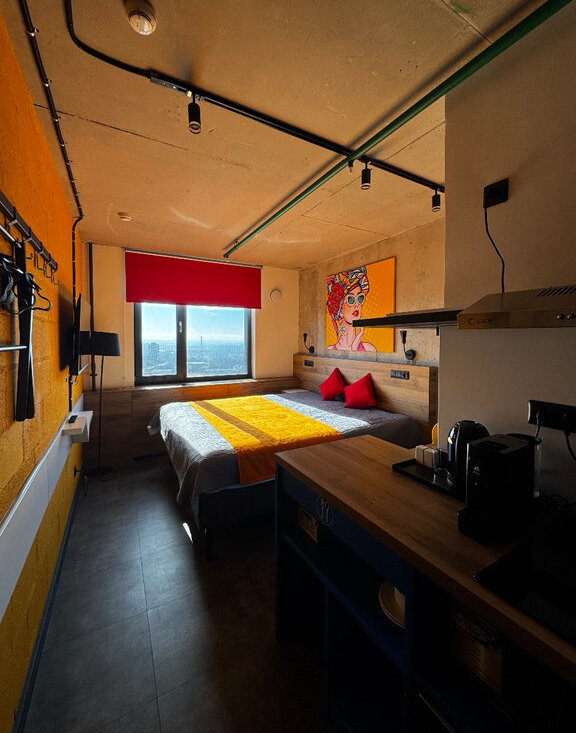 Сдается студия в новом апарт-отеле. Развитая инфраструктура - много общественных пространств, кафе, коворкинг, фитнес,ресепшен, круглосуточная охрана. 24 этаж, вид на город. Длительная аренда для проживания 1-2 человек, полностью оснащена всем необходимым для комфортной жизни. Идеально подойдет для одиноких молодых людей либо семейной пары. До ближайших станций метро 15 минут пешком, рядом остановка общественного транспорта. Есть возможность парковки автомобиля. Развитый и очень зеленый микрорайон.