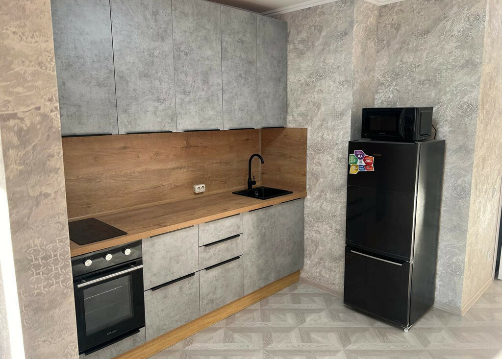 Просторная студия с выделенной зоной кухни. Для пары или одного человека.