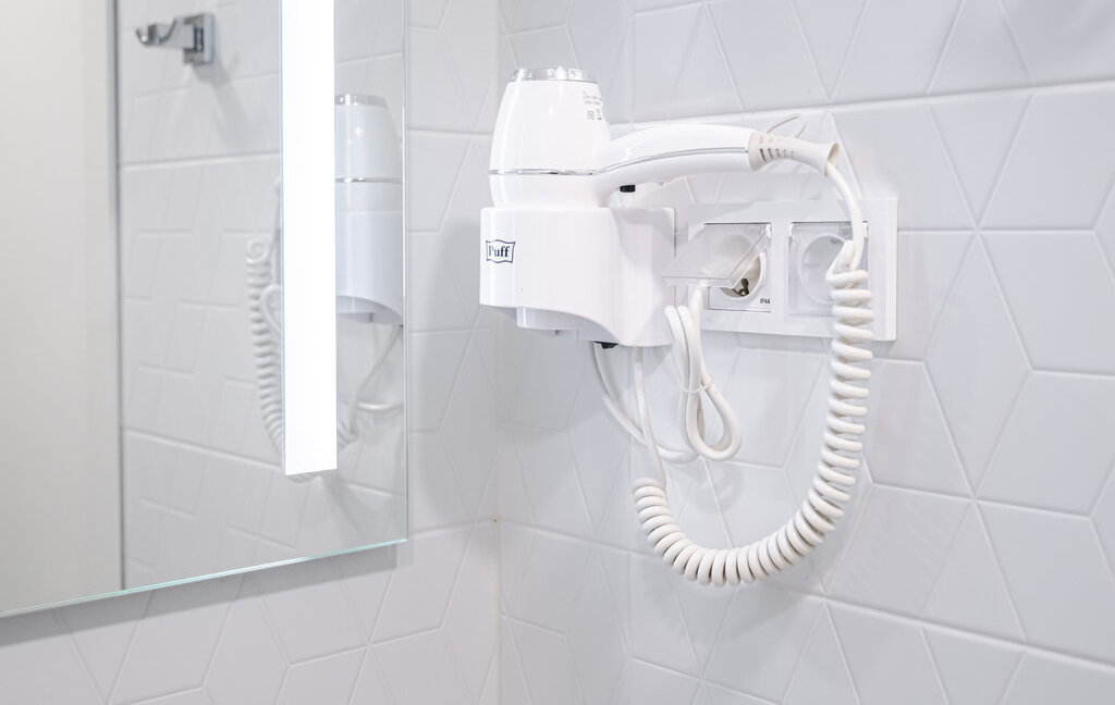 - Дополнительно в номере есть утюг, гладильная доска, сушилка и установлена система центрального кондиционирования.