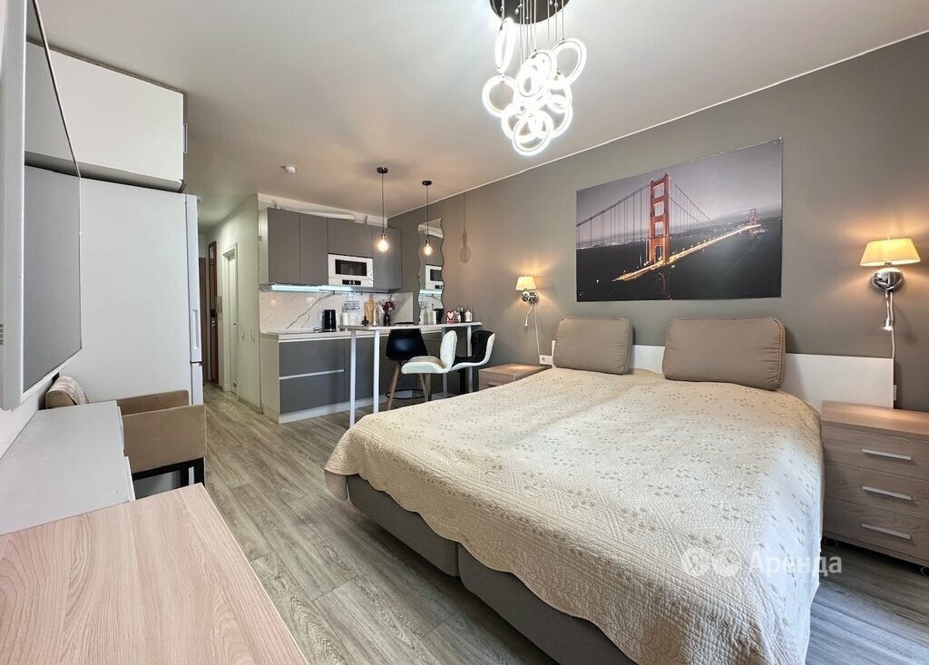 Сдаётся студия площадью 25 кв.м. с дизайнерским ремонтом на 8 этаже в 18-этажном доме на срок от 11 месяцев. Из техники есть: