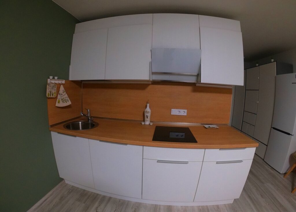 -кухня из австрийских экологичных комплектующих (фасады, столешница, фартук) и фурнитуры,