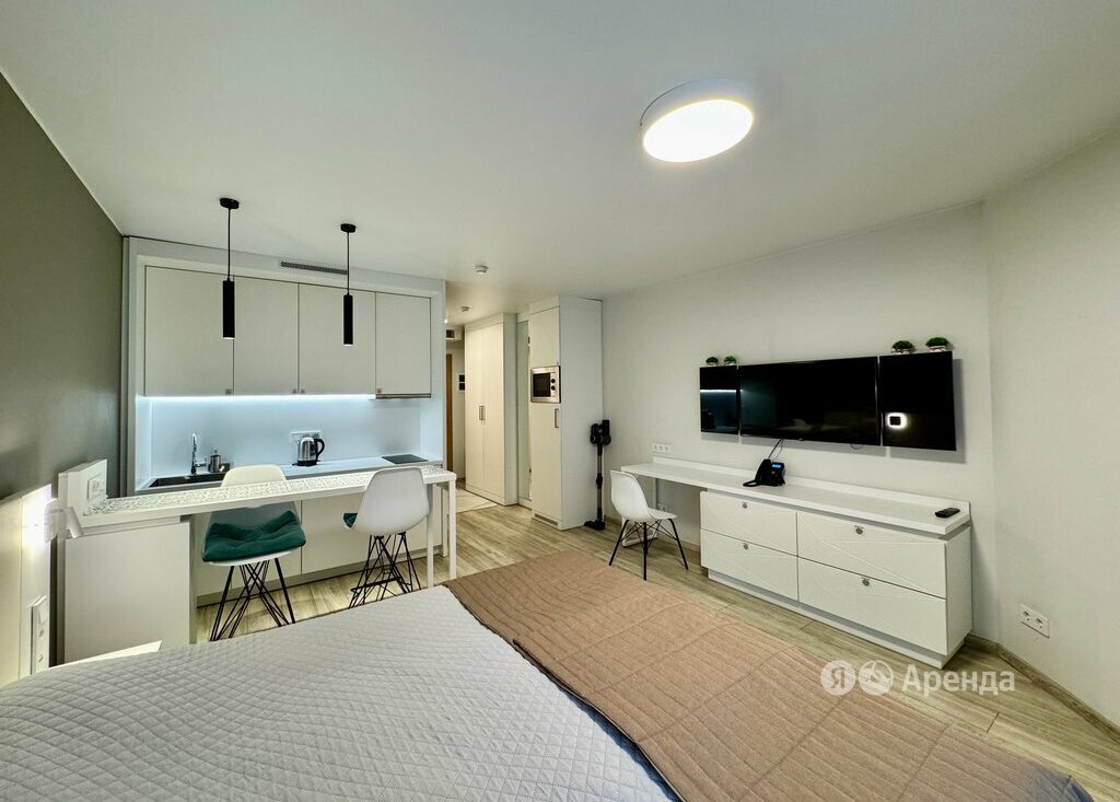 Сдаётся студия площадью 29 кв.м. с дизайнерским ремонтом на 13 этаже в 18-этажном доме на срок от 11 месяцев. Из техники есть:
