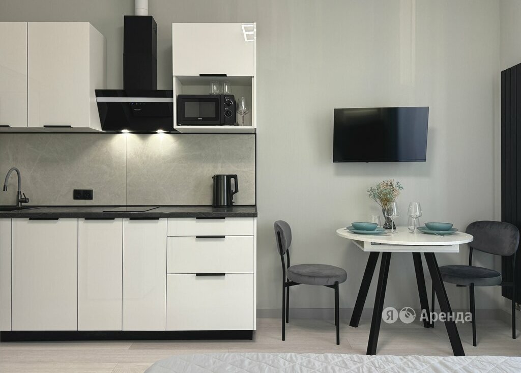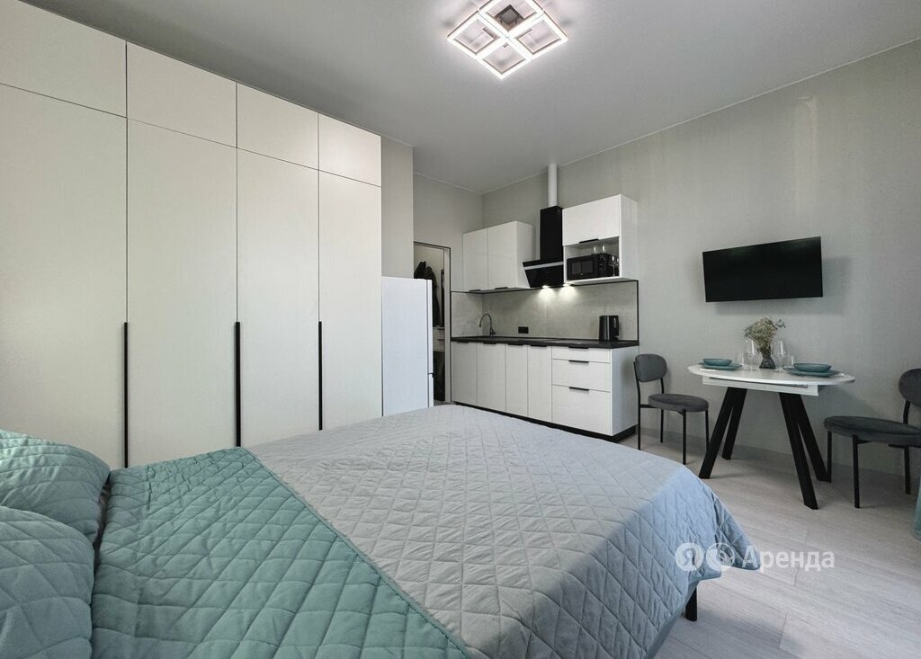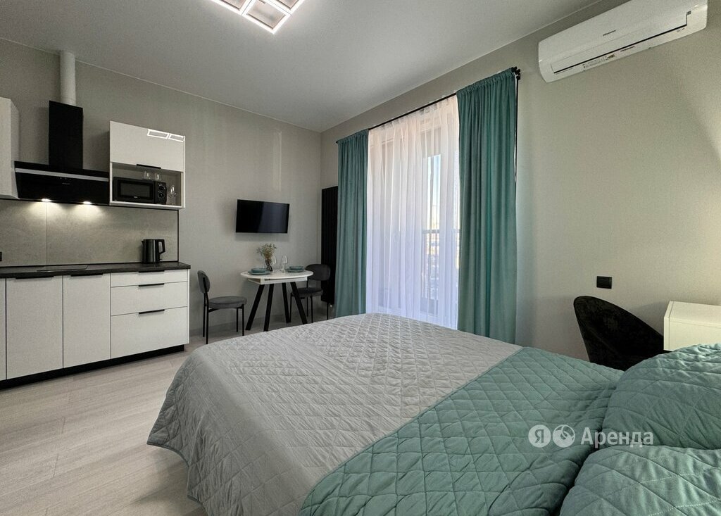 Сдаётся студия площадью 24 кв.м. с евроремонтом на 2 этаже в 19-этажном доме на срок от 11 месяцев. Из техники есть: