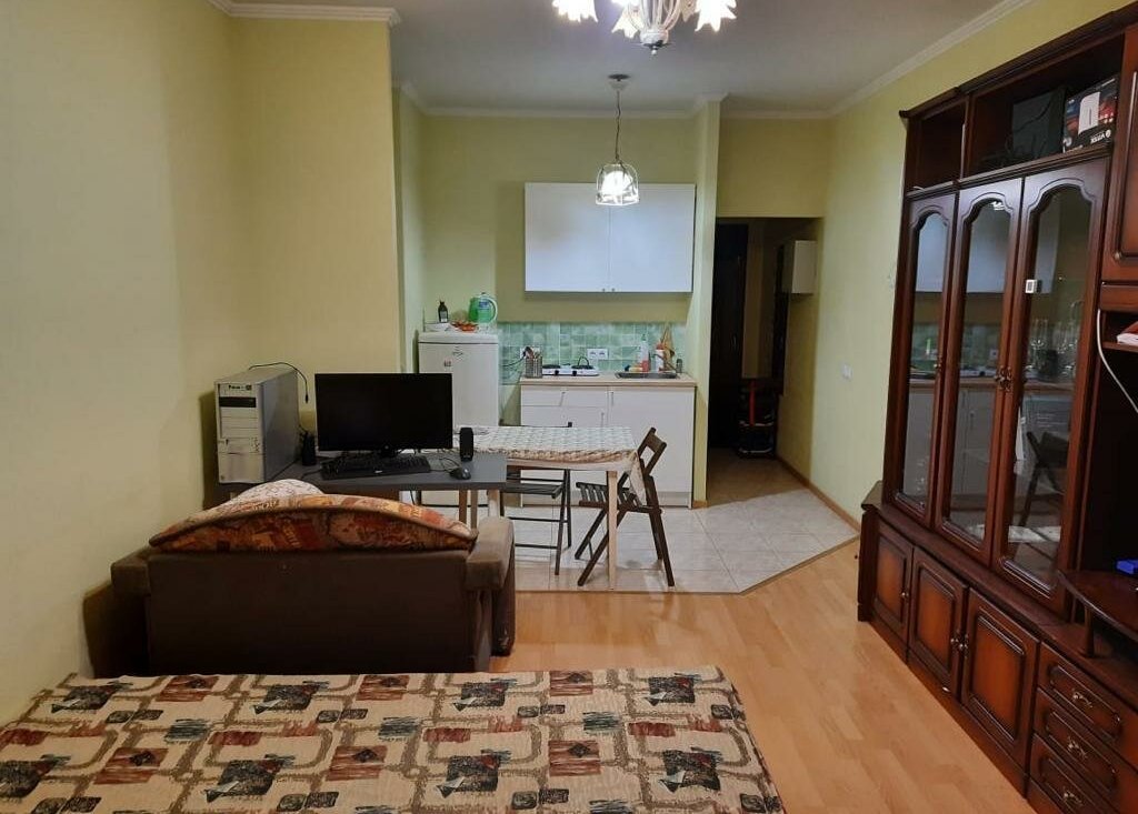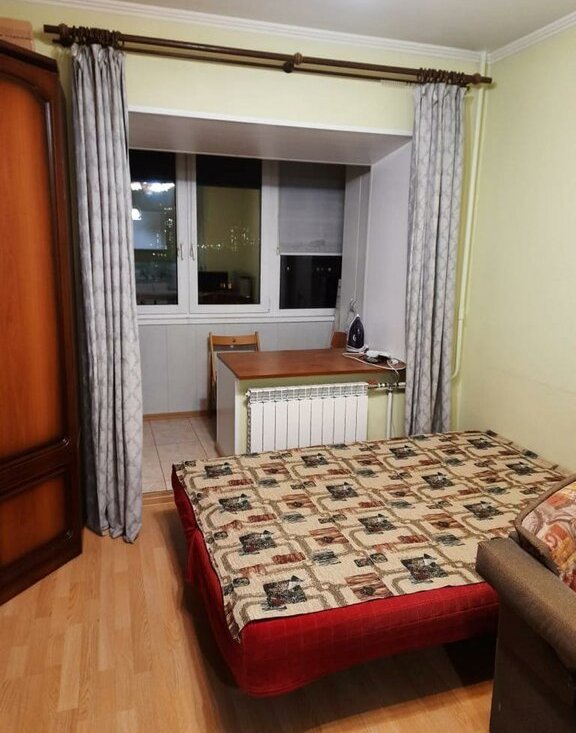 Мебельная стенка - вместительный шкаф, диван двухспальный Бединге Икеа, стол обеденный, 2 стула, кухня мин. Телевизор, холодильник, стиральная машина, электроплита на две комфорки, без духовки,сушилка для белья, гладильная доска. Для одного арендатора, дети по согласованию. В квартире курить нельзя. Без животных!