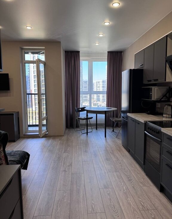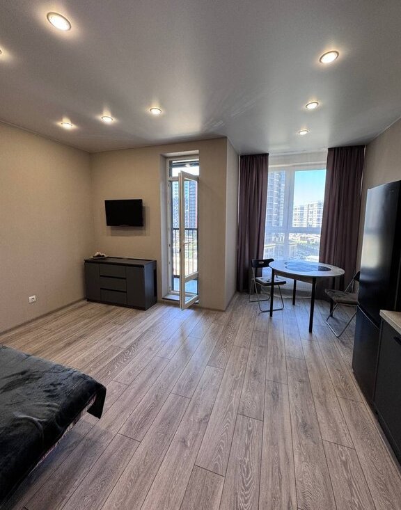 Комиссия 50 %. Сдается впервые, полностью новая, просторная студия 27.5 м2 с лоджией. Квартира с современным и сильным ремонтом, с новой техникой и мебелью. Лоджия с панорамным остеклением. Студия грамотно и функционально зонирована. Установлен вместительный шкаф - купе во всю нишу в коридоре, здесь разместится большое количество Ваших вещей ( как в гардеробной комнате). Кухня встроенная, оборудована плитой, духовкой и вытяжкой, чайником, холодильником и свч. Спальное место удобный диван, при необходимости можно установить кровать. На кронштейне установлен телевизор. Ванная комната 4 м2, тёплые полы, душевая и стиральная машинка. Коммунальные платежи летом до 3000, зимой до 4500. Интернет проведён. Сдаётся Нанимателям без домашних питомцев. Можно с ребенком. Залог за квартиру полный, можно выплатить двумя частями.
