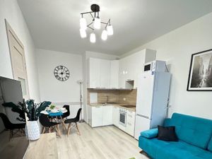 Квартира после дизайнерского ремонта комфорт-класса. Удобная планировка с отдельной кухней-спальней и очень теплой лоджией, которая является отдельной комнатой-кабинетом. Вход на лоджию - через распашные панорамные двери. На территории ЖК детские и спортивные площадки.