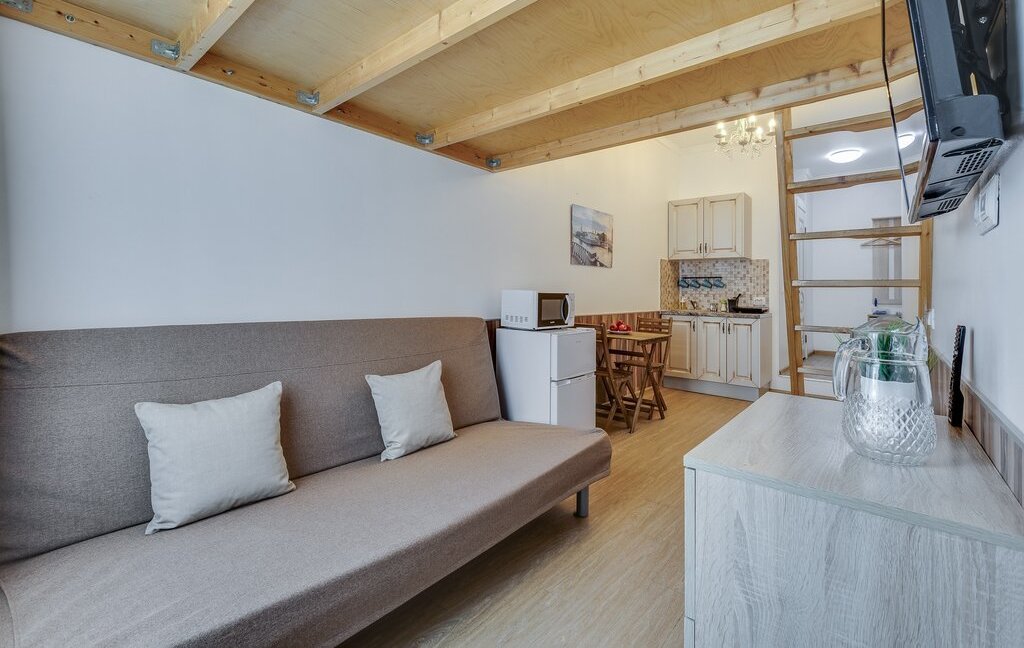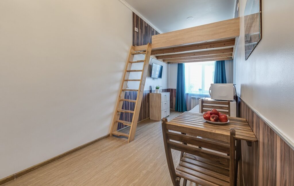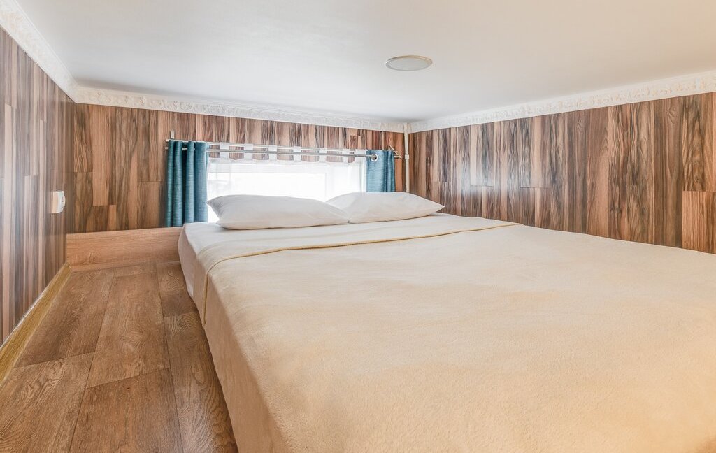 • Удобное зонирование: На втором уровне — просторная кровать с ортопедическим матрасом, а внизу — уютная гостиная зона.