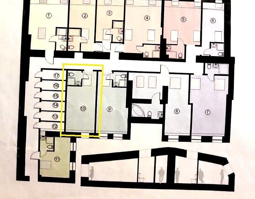 9 студий на этаже. Под квартирой нет жилых помещений, только офисы. Отдельные счётчики. Низкие коммунальные платежи.