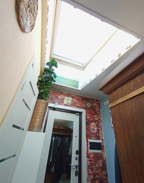 Окно во двор и одно мансардное окно в потолке, во входной зоне.