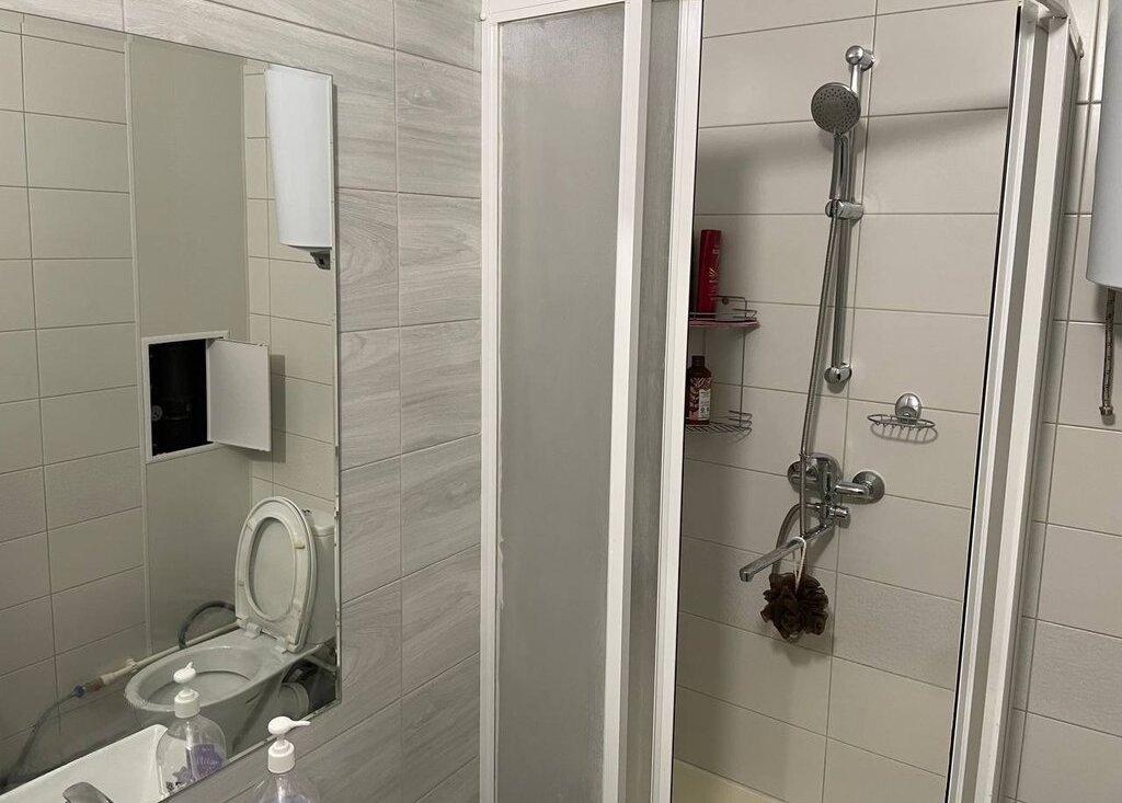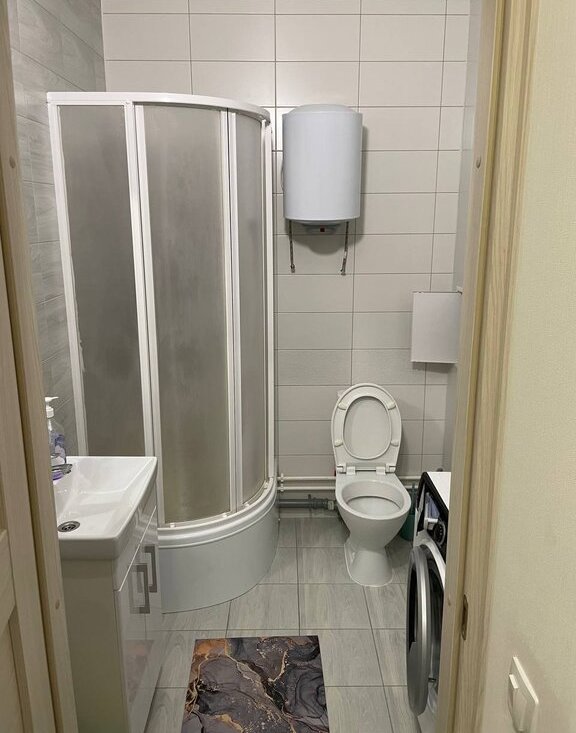 Санузел совмещённый. Ванная оснащена душевой кабиной и стиральной машиной.