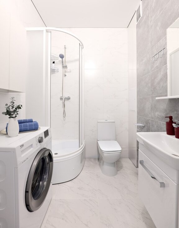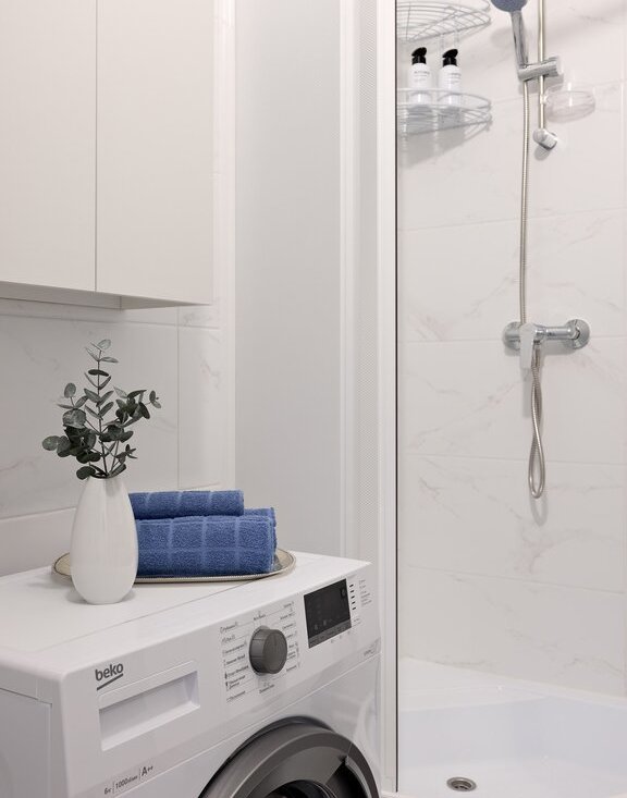 - Стиральная машина, электрический полотенцесушитель, утюг, гладильная доска,сушилка для белья, пылесос