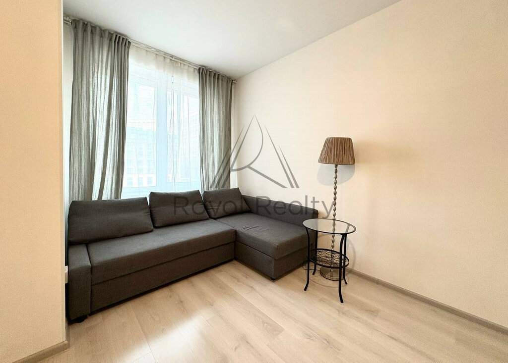 Квартира — светлая и уютная студия с лоджией, выполненная в современном дизайнерском стиле. В комнате установлен удобный диван, дополнительно предусмотрен матрас для комфортного сна.