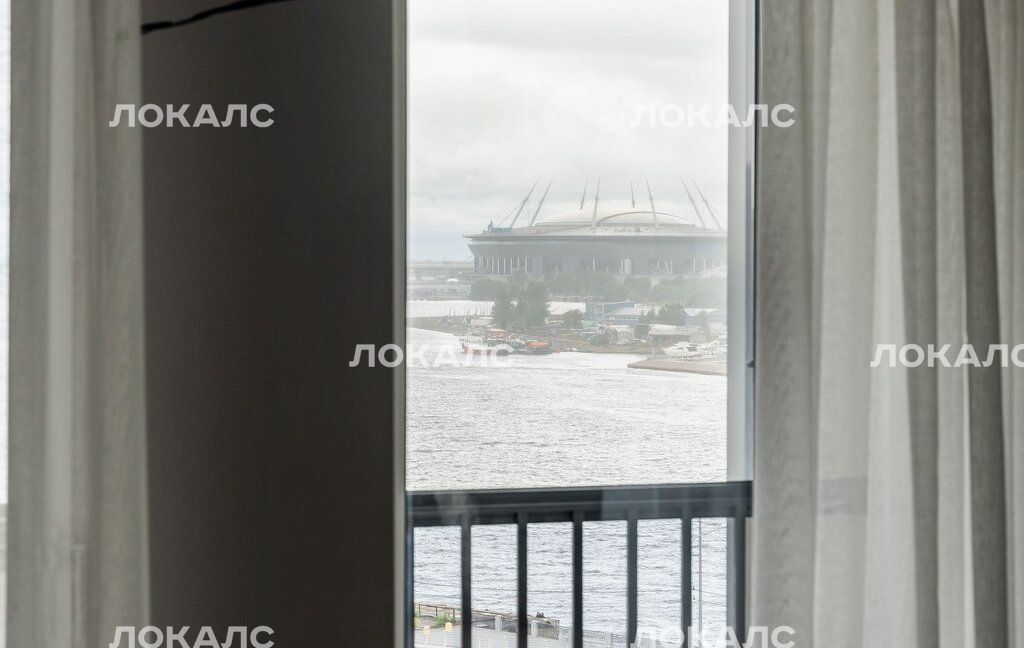 Квартира расположена по адресу: ул. Уральская, д. 21, корп. 1. Это престижный район с впечатляющими видами из окон. Главная особенность - панорамные окна с видом на залив, Газпром Арену и Лахта Центр. Вы сможете наслаждаться прекрасными пейзажами, не выходя из дома.