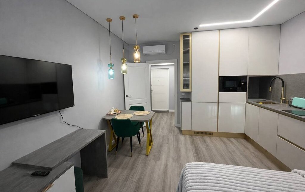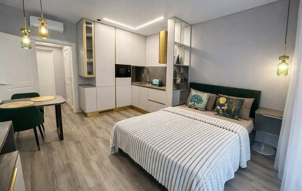 Просторная студия "заезжай и живи", с выделенной зоной кухни и двухместной кроватью ждет своих жильцов!